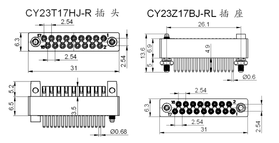 Y23系列矩形電連接器是根據(jù)GJB1438A(MIL-C-55302)標準研制生產(chǎn),可靠性好,互換性能強,雙曲面線簧插孔,2.54mm標準網(wǎng)格間距。印制板浸焊,焊接等端接形式。帶鎖緊功能的螺紋導銷,導套。鉚接,螺紋緊固等多種固定形式。該系列矩形連接器廣泛應用于機箱內(nèi)部印制板與印制板之間,以及印制板與線纜之間信號的傳輸,適用于航天、航空、電子、兵器、船舶等行業(yè)的機箱,機柜內(nèi)部。