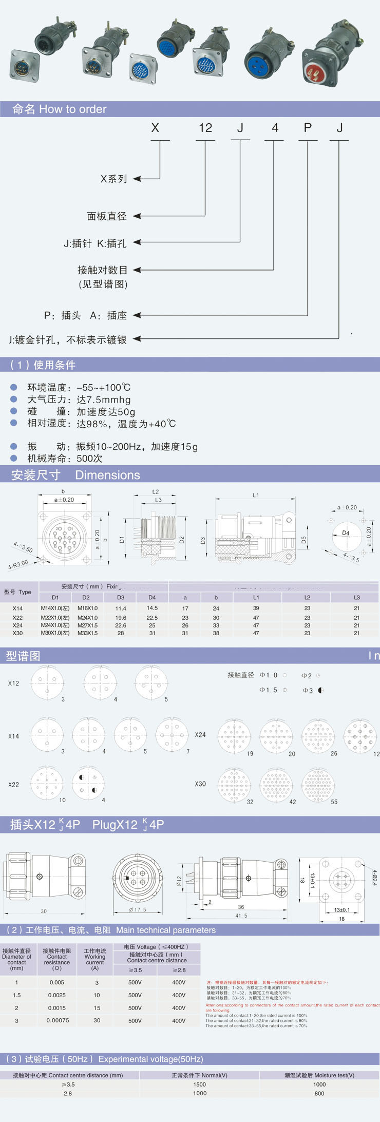 X series small circular connectors suitable for the connection of electrocs and wireless equipments and cables.lf the diameter.amount and distrbutng locatlon of contact pairs are the same,it could be used toreplace the CX type eectronic industry standatd called SJ1743-81.