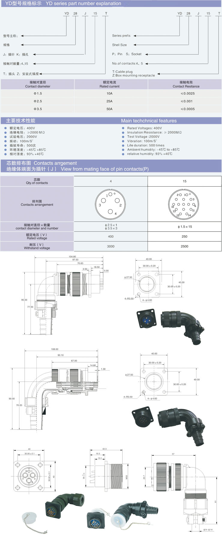 YD series circular connector special designed for electrical connection of the servo motor power and control lines,Has grounding device,waterproof and dustproof.Comply with GB5526-85 standard.